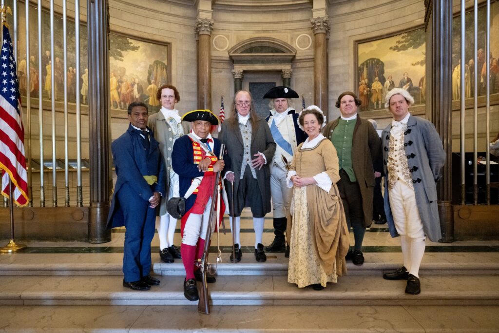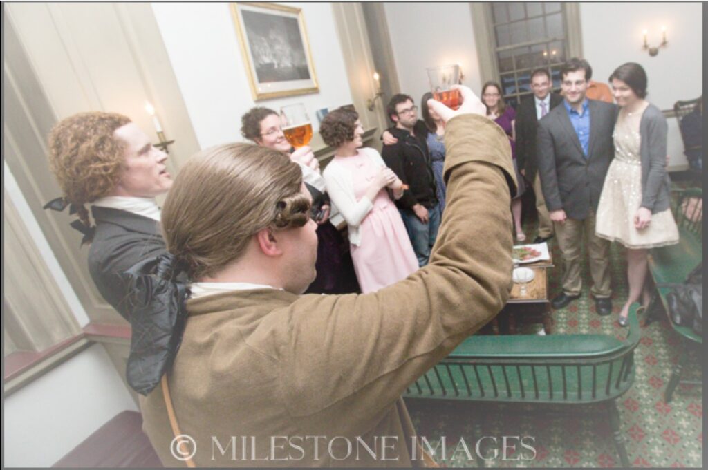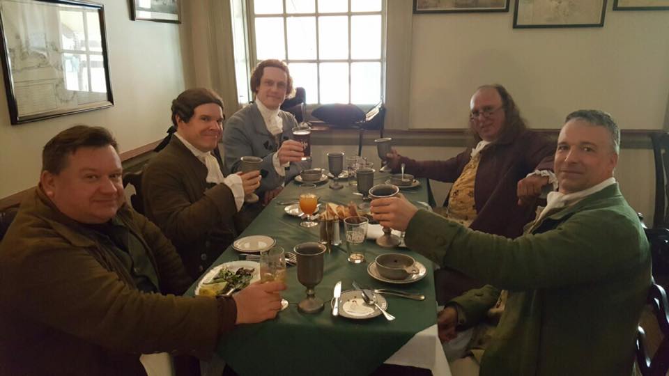 Gathering with Jefferson, Franklin, et al at City Tavern in Philadelphia.