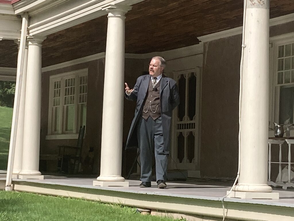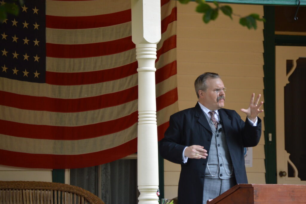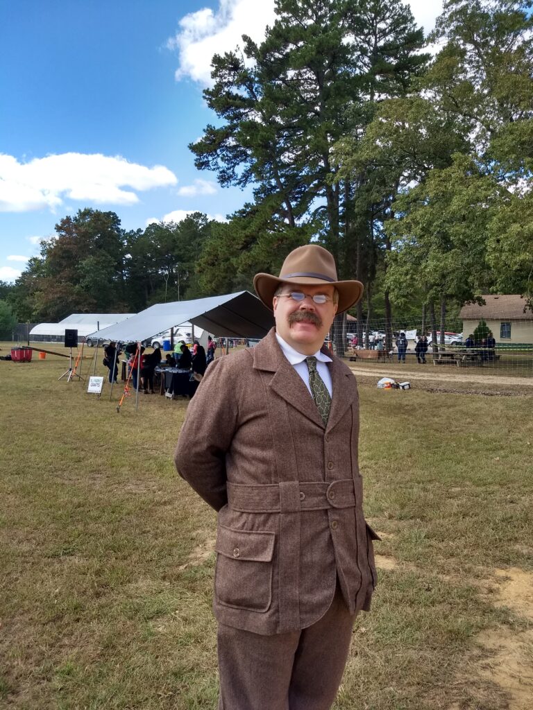 This last Wednesday I had an opportunity to see a superb presentation by Peyton Dixon, who portrays President Theodore Roosevelt. His characterization, voice, language, and costume were all spot on. More importantly, his presentation to a group of park volunteers was exactly what was needed. He did an outstanding job of talking about his time period, in character at all times, yet making it relevant to today and to his audience. He was serious, funny, and a thrill to listen to.