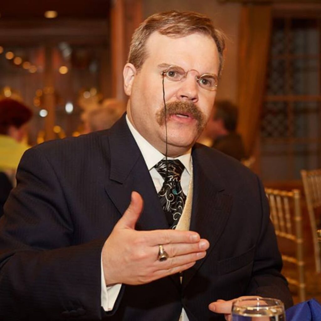TR makes your event a bully good time! This "steam engine in trousers" engages your crowd with lively stories, direct perspective, and can share in a laugh as well as a selfie!