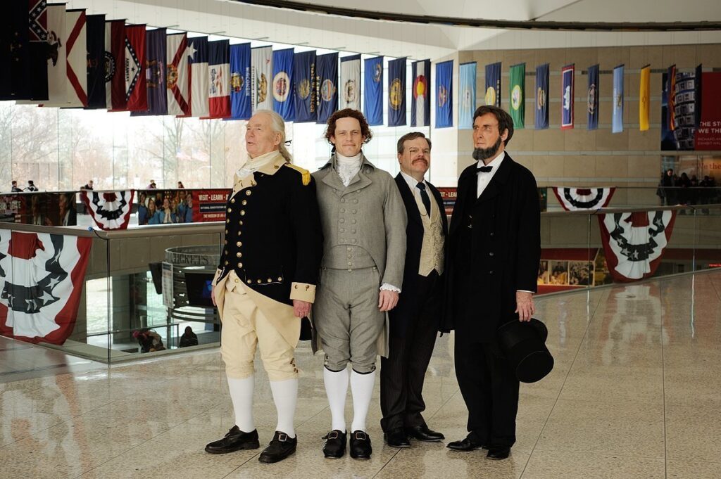 A living Mount Rushmore! (David S. Taylor as GW, Steve Edenbo as TJ, Peyton Dixon as TR, Bob Gleason as Lincoln)